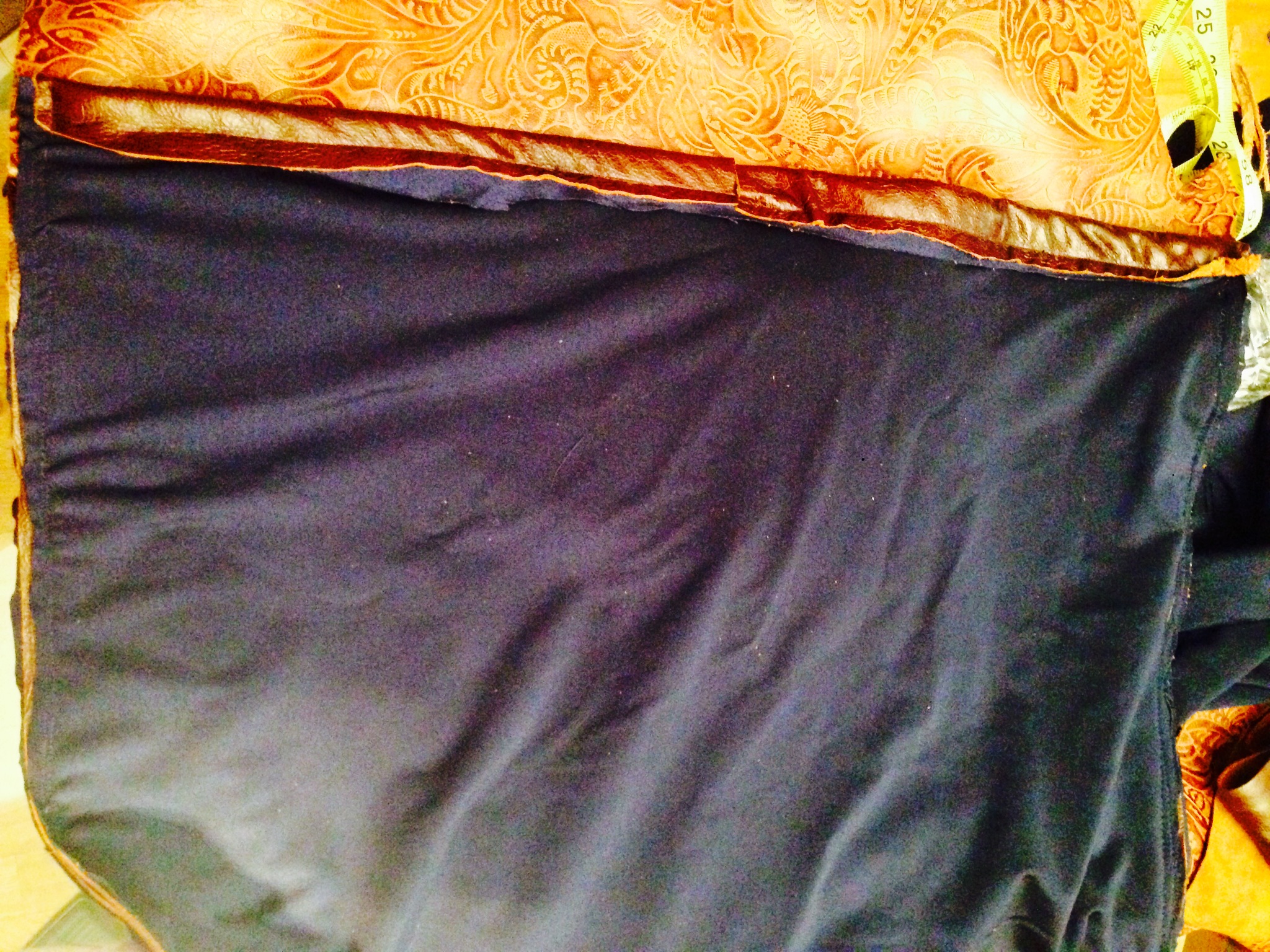 I used remnants of some fabric as the lining. The base of the bag will be dark brown and the flap will be the embossed leather. It was a very nice compliment. The fabric I had was a navy blue which was a nice touch. I decided to use a navy blue thread.
