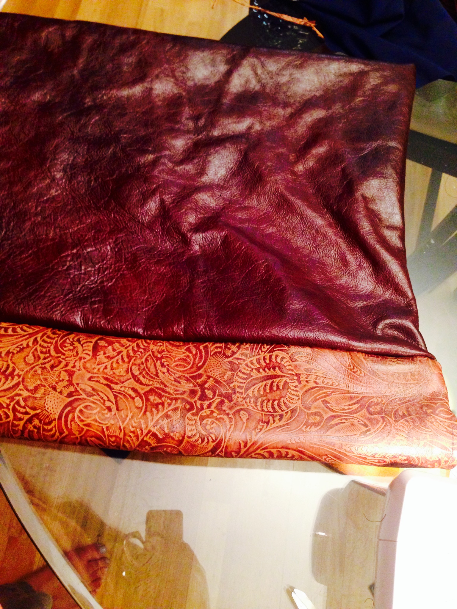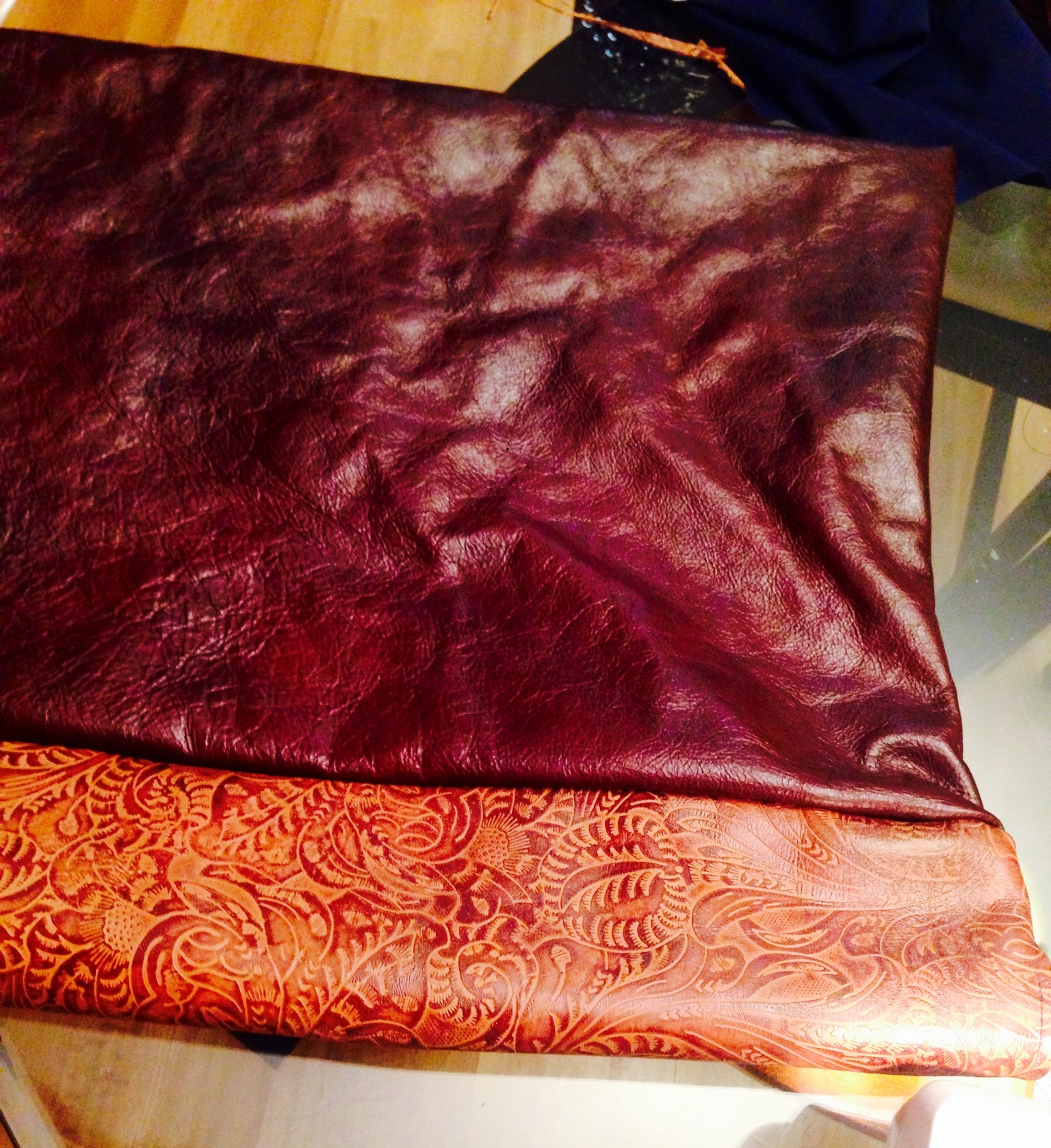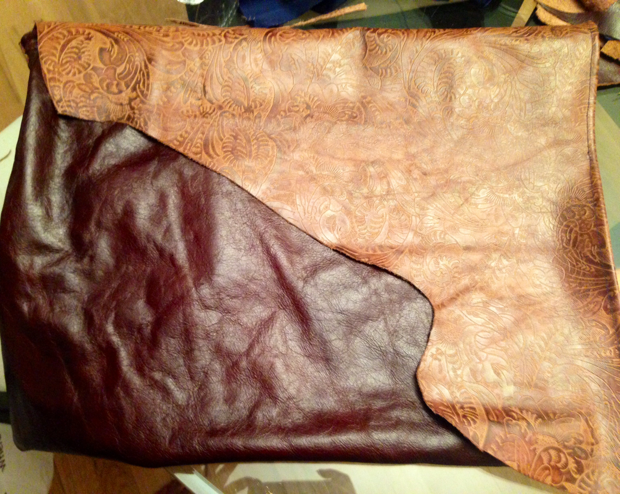 I received two types of leather in my package of remnants. I decided I would use some for the body of the bag and the other as the flap.