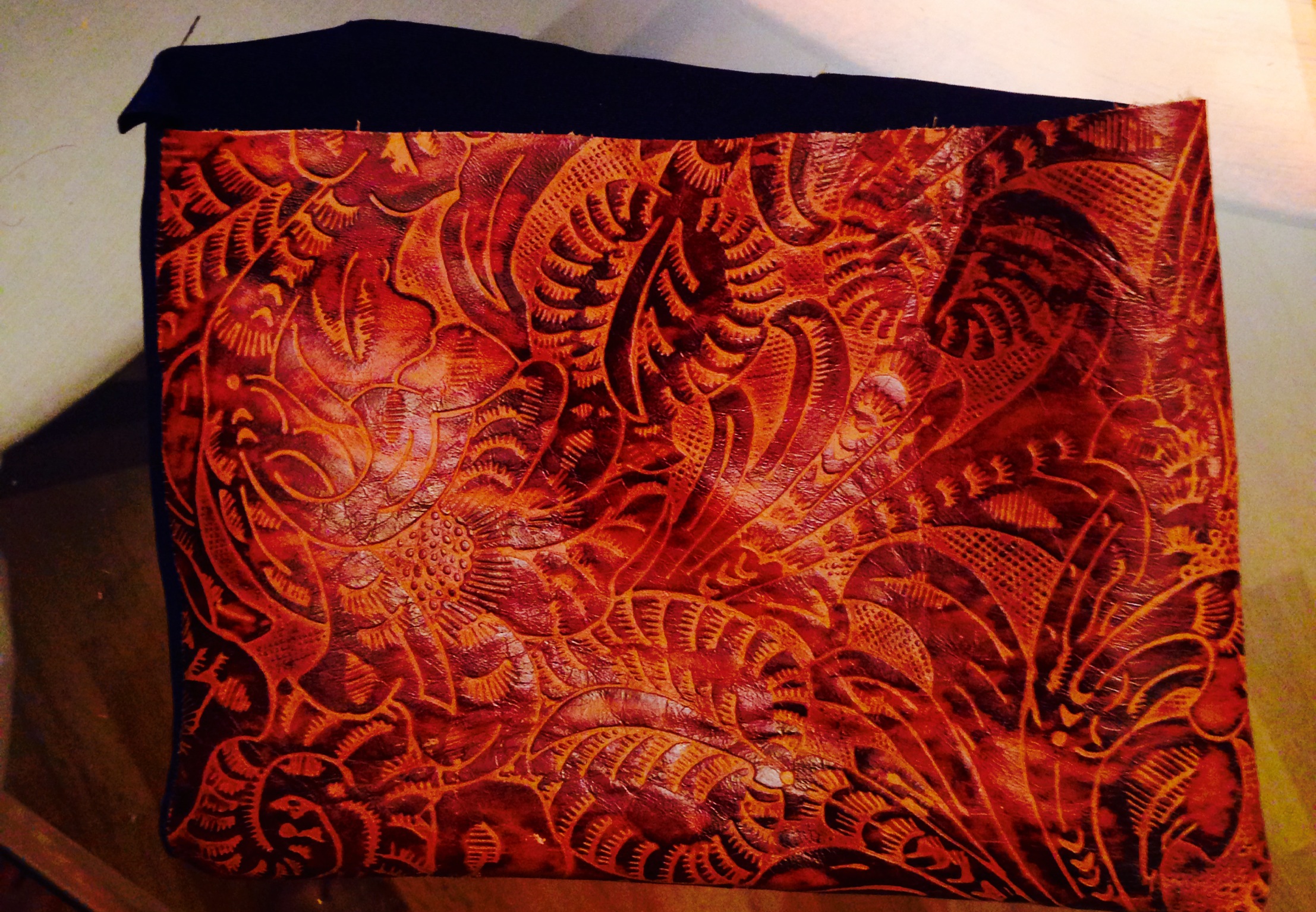 Step 5: It should look like a very long piece of leather. Next is to sew the sides. I flipped it inside out and sewed it together to get the finished look. I also made sure that about 1 inch of the embossed flap was sewn along the sides of the bag.