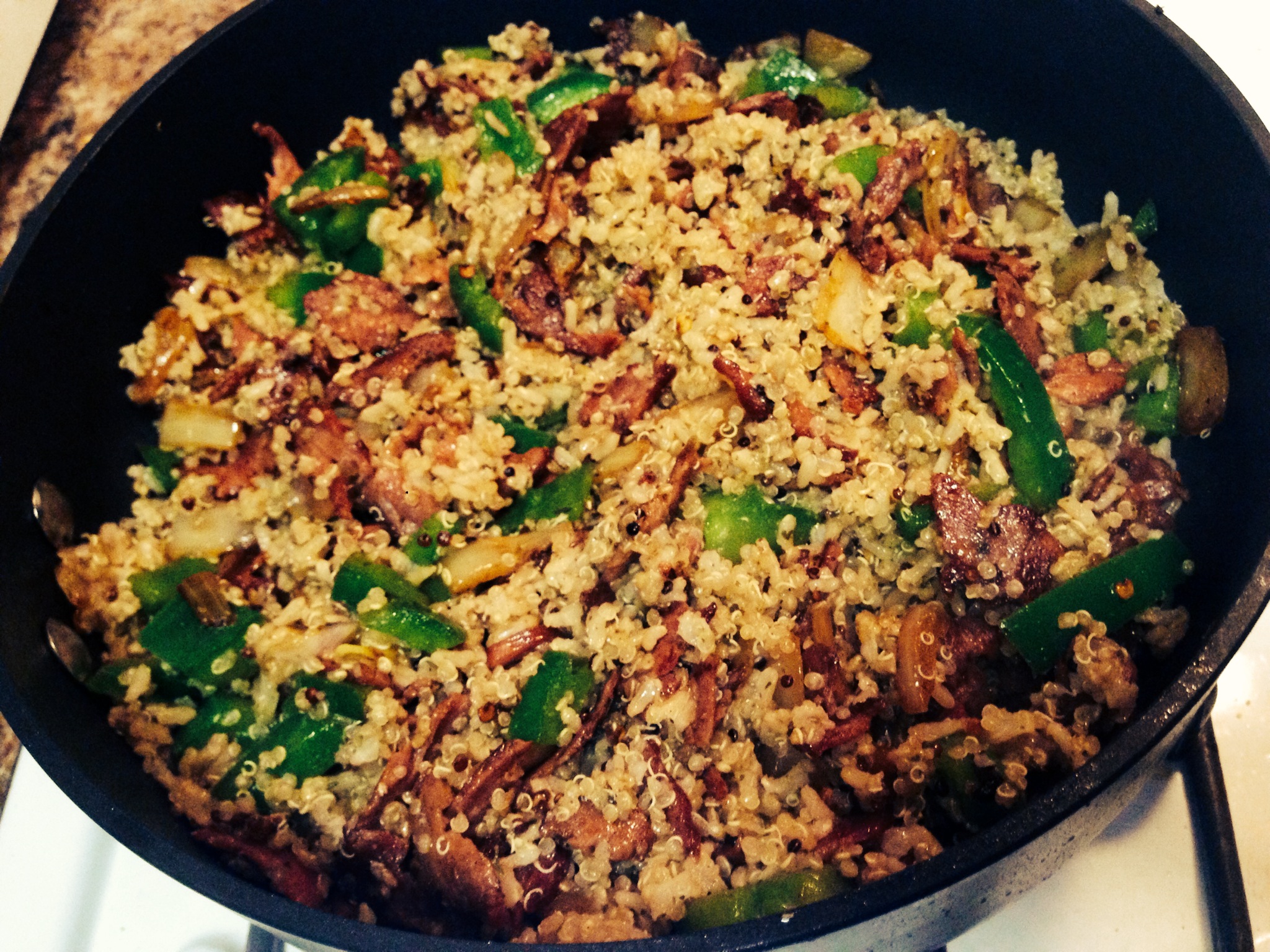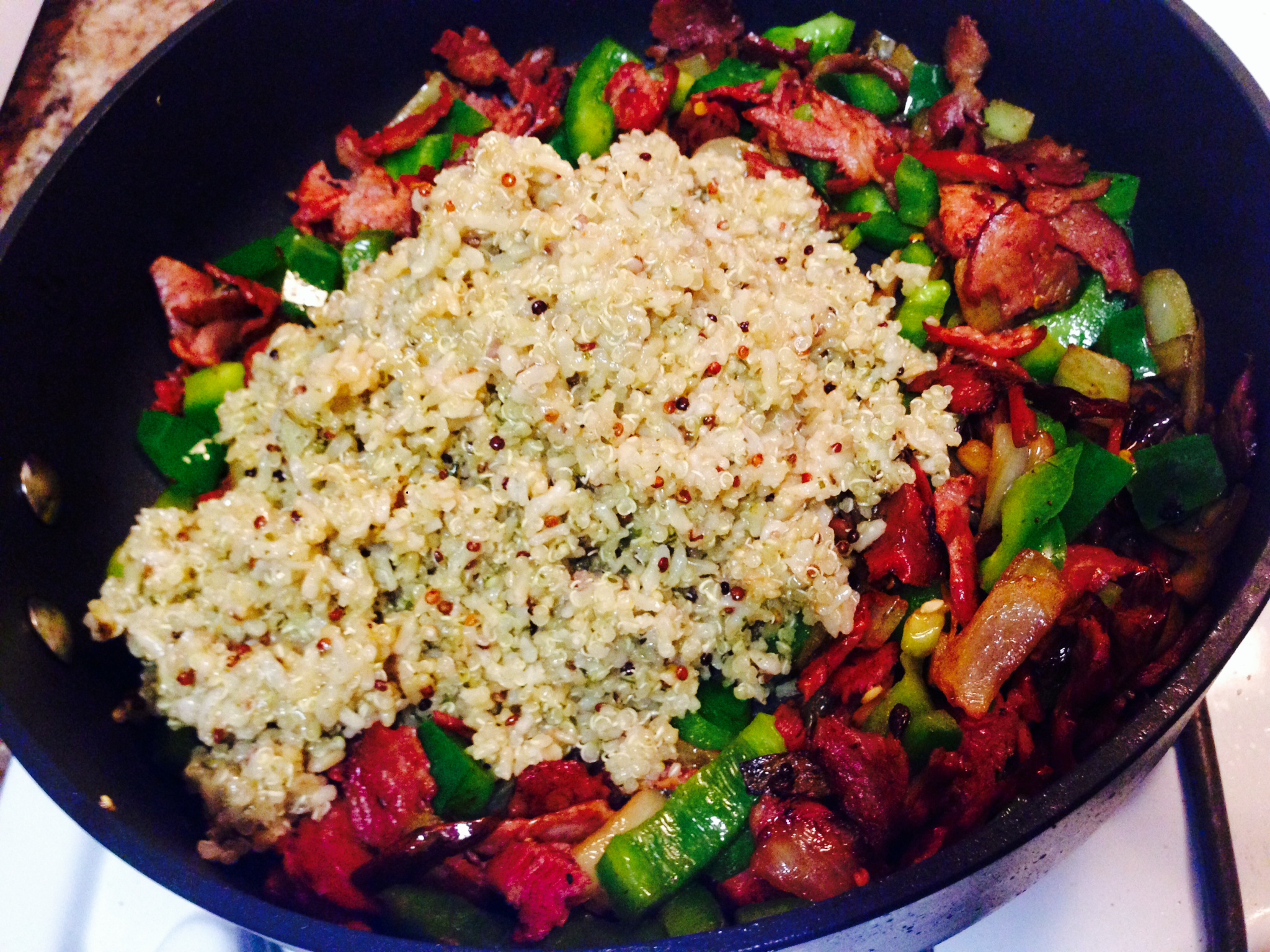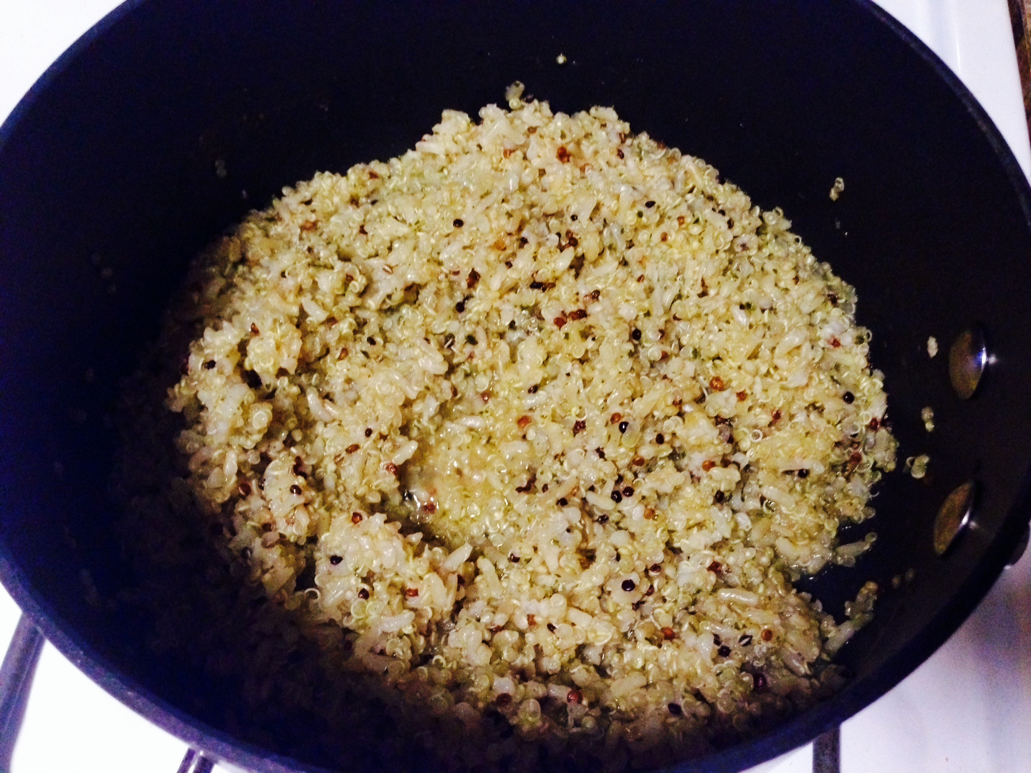 Step 9: Here’s the fun part! Add the quinoa. Stir it in. Toss it around for a few minutes and set it aside.