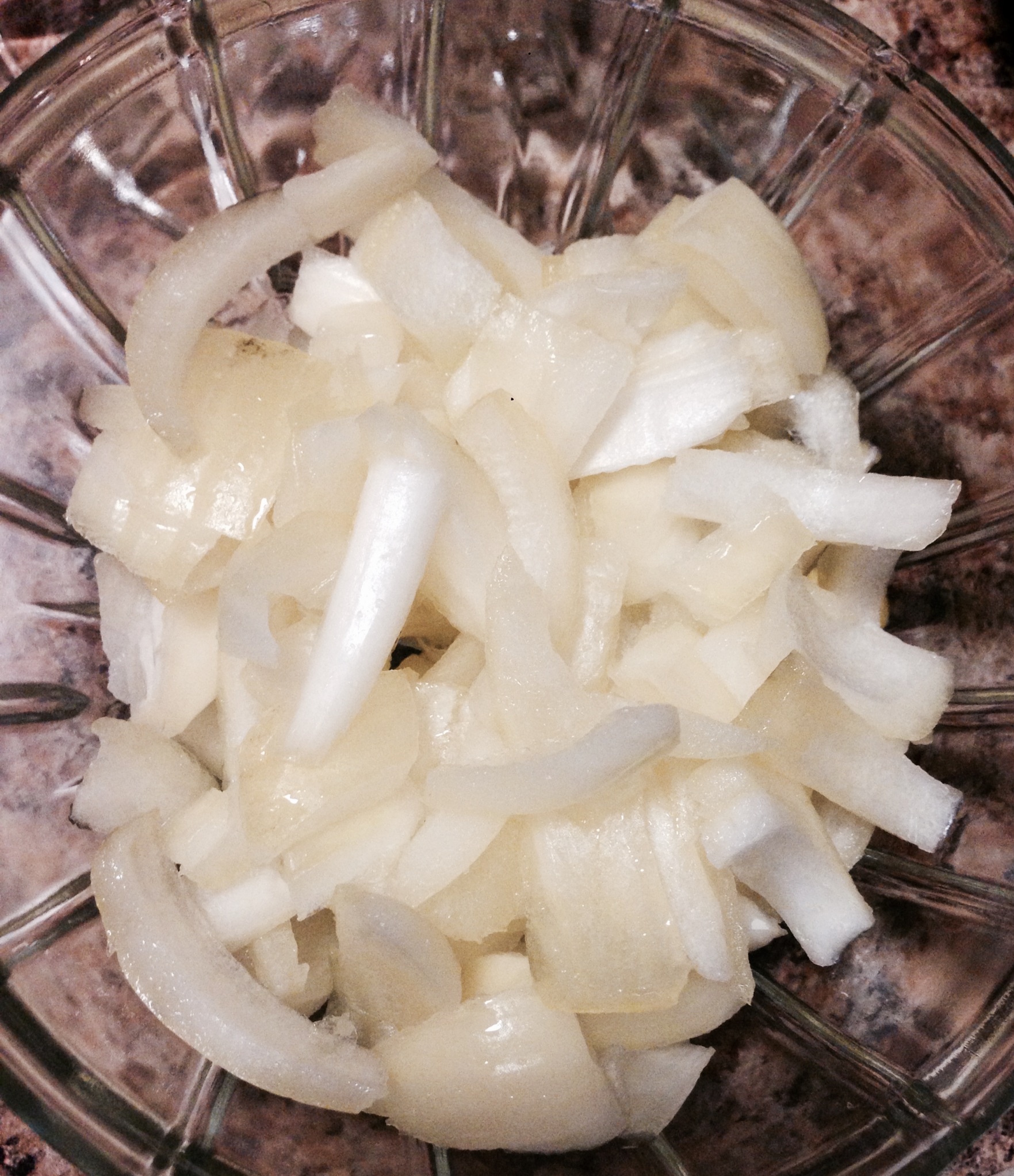 Step 3: Dice the onions and green peppers. Get it prepared for it later as the quinoa cooks.