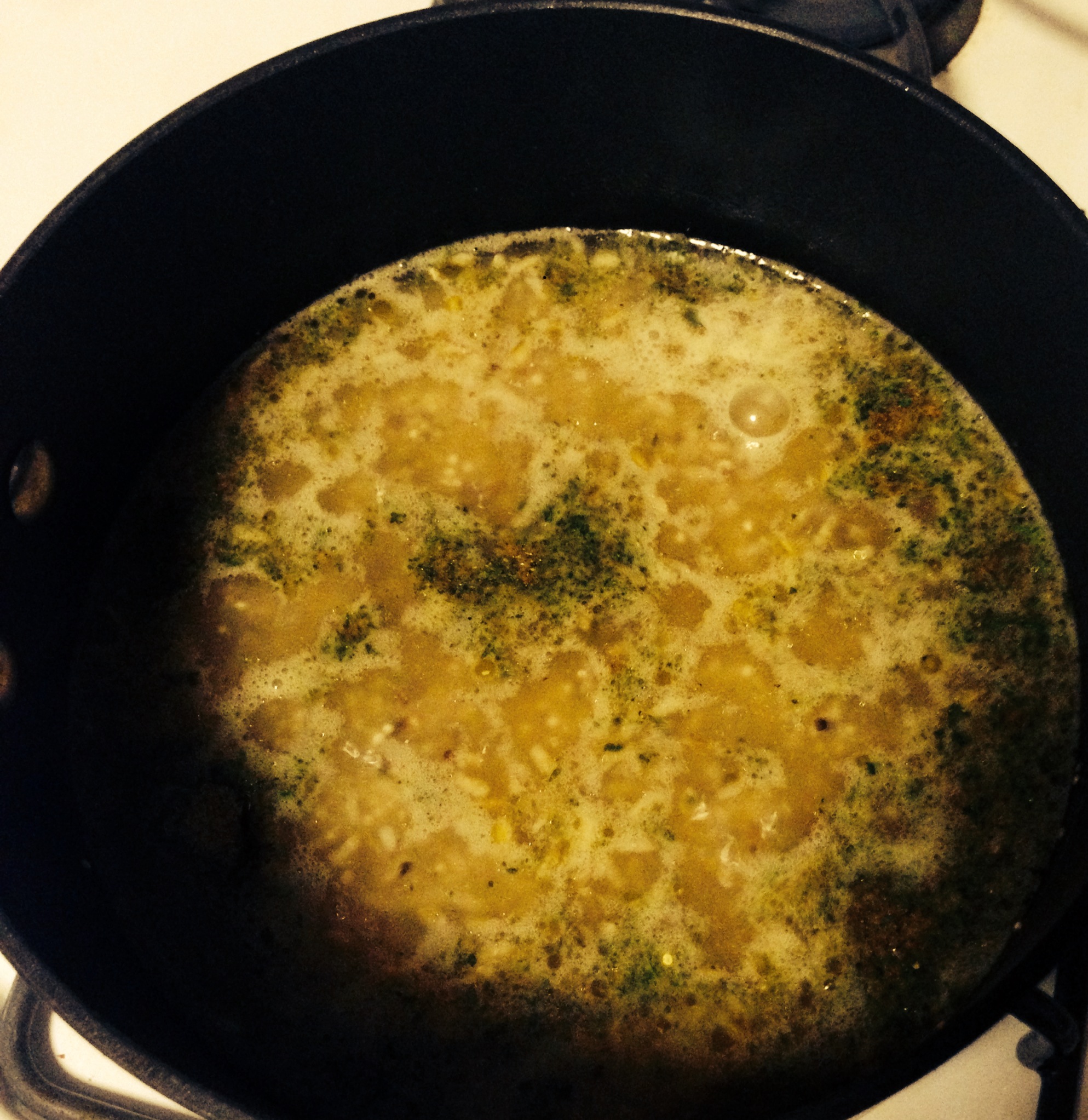 Step 2: Next, bring the water, olive oil to a boil. When it comes to a boil, add rosemary and sea salt.