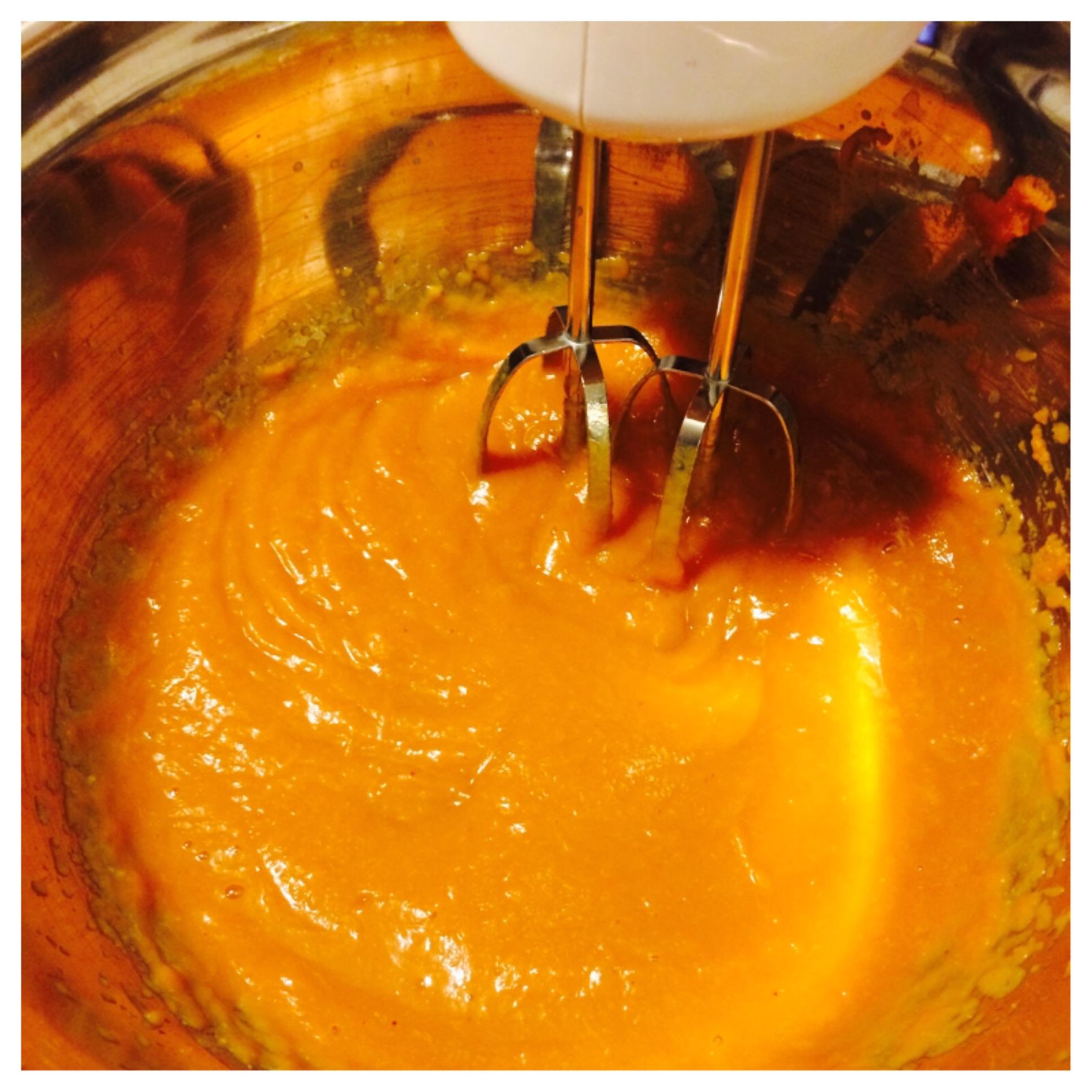 1. Start by taking the pumpkin puree, maple syrup and vanilla extract and mix it all together. I like to use a handheld mixer.