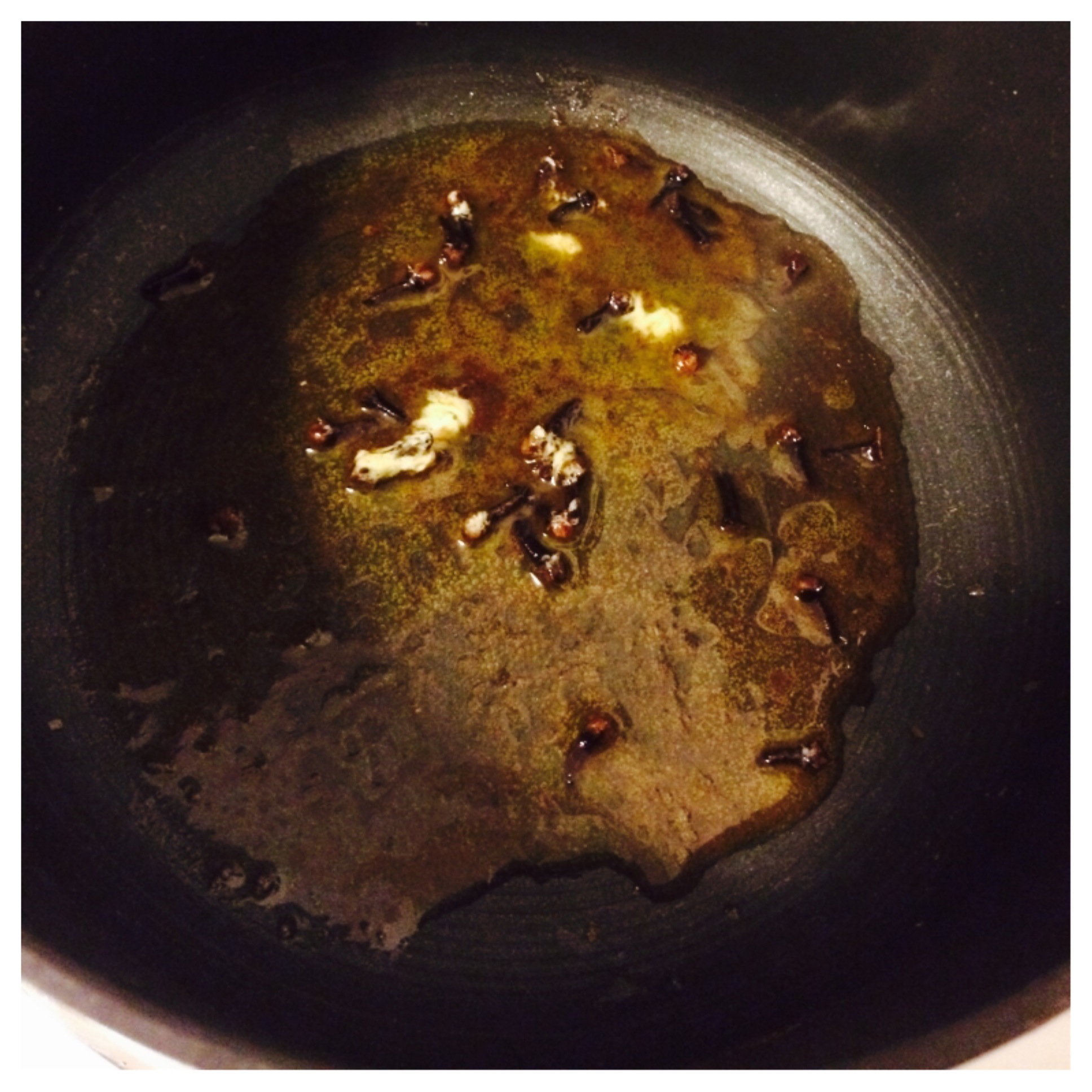 3. Next, add the cooked quinoa. In a separate pan, melt the butter and roast the cloves in the butter for a few minutes. Drain out the butter to take out the cloves. We are trying to get a subtle clove taste.