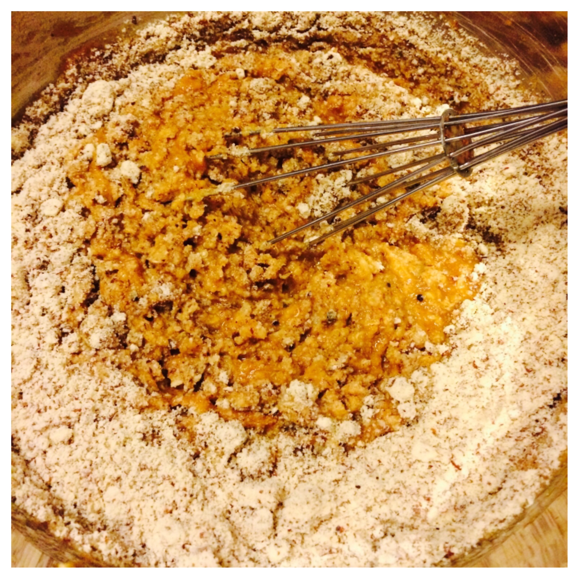 4. Add almond meal for a thicker consistency. Distribute in the baking dish. Bake at 350 degrees for 20-25 minutes. The idea is to grab and go in morning, so in the morning you can pop it in the microwave and eat away!